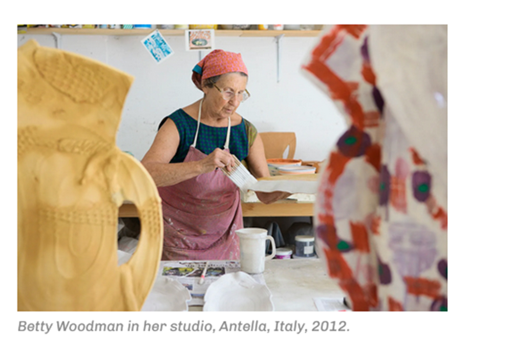 ‍Le opere di Betty Woodman (1930 – 2018) sono presenti in oltre novanta collezioni pubbliche, tra cui il Metropolitan Museum of Art di New York; il Museum of Modern Art di New York; il Whitney Museum of American Art di New York; il Museum of Fine Arts di Boston; la National Gallery of Art di Washington, D.C.; il Baltimore Museum of Art; il Philadelphia Museum of Art; il Museum of Contemporary Art di Los Angeles; l’Hammer Museum di Los Angeles; il San Francisco Museum of Modern Art; il Victoria and Albert Museum di Londra; il Musée des Arts Décoratifs di Parigi; l’Albertina Museum di Vienna; il Musée d’Art Moderne et Contemporain di Ginevra; lo Stedelijk Museum di Amsterdam; e il Museu Nacional do Azulejo di Lisbona.