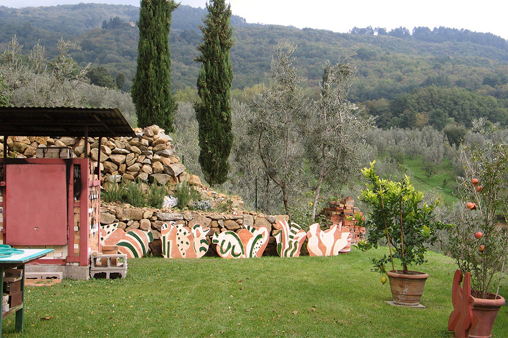 Giardino di Betty , in fondo in un cubo rosso il forno per cuocere le sue ceramiche-2026