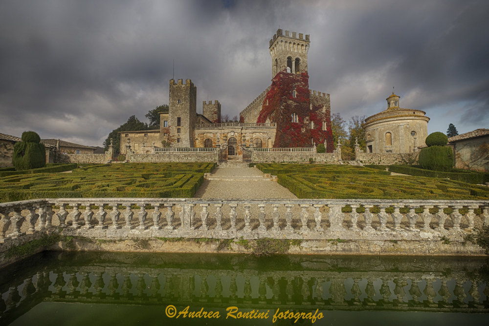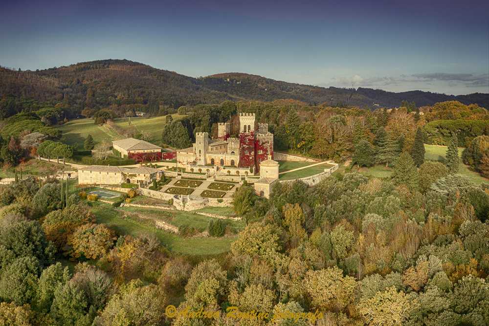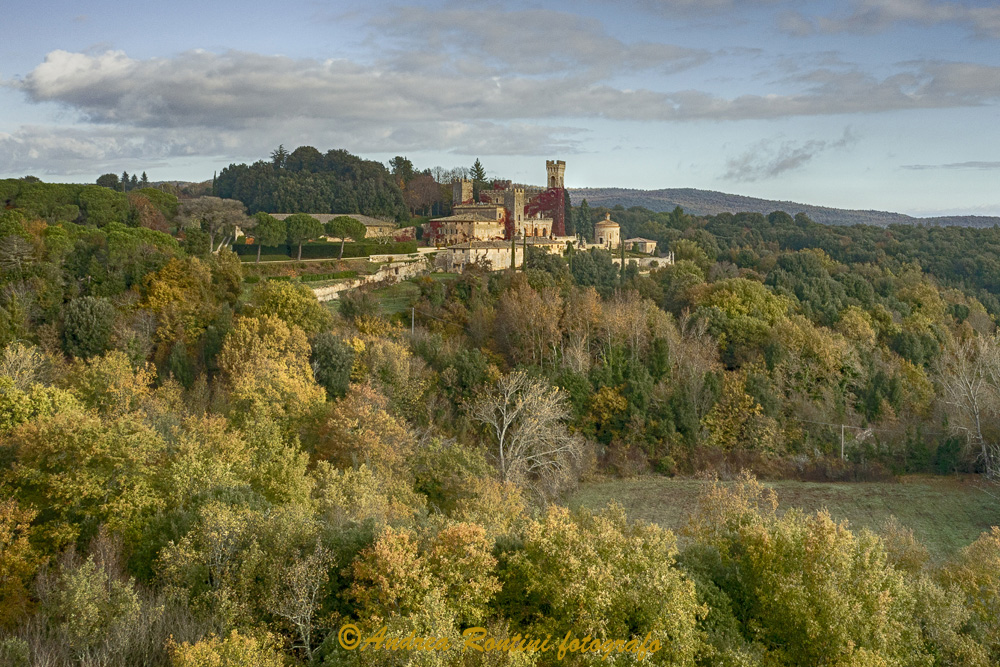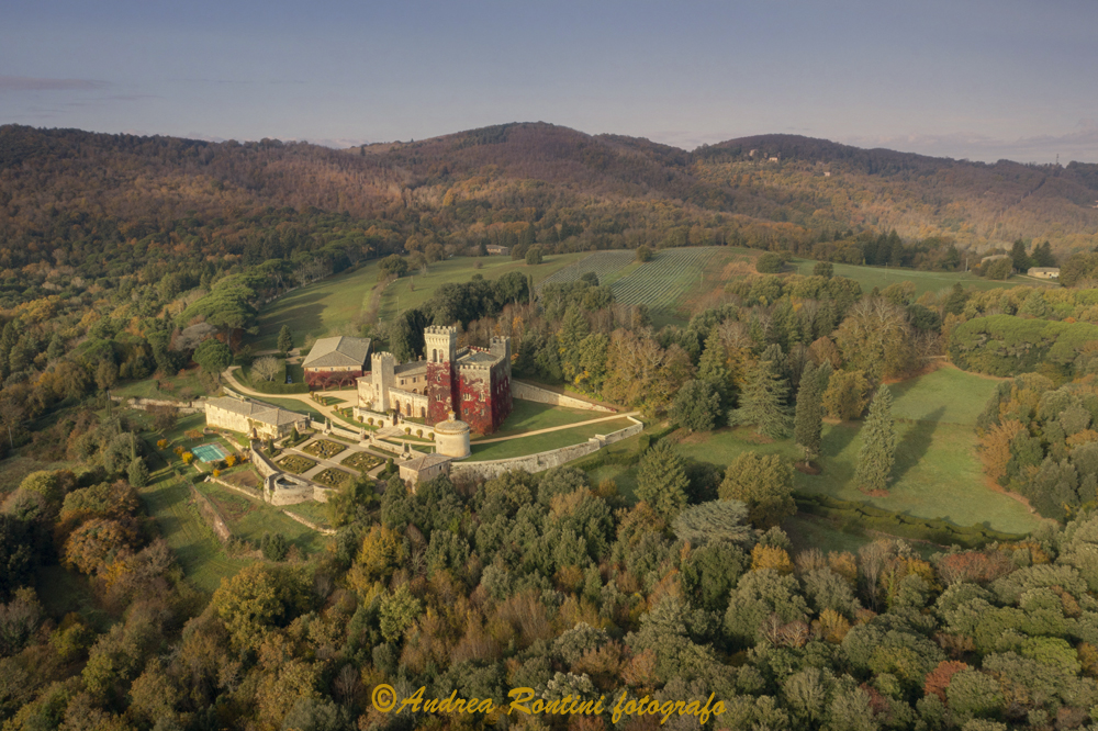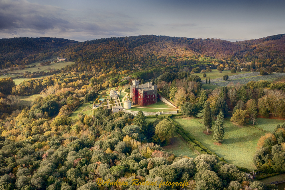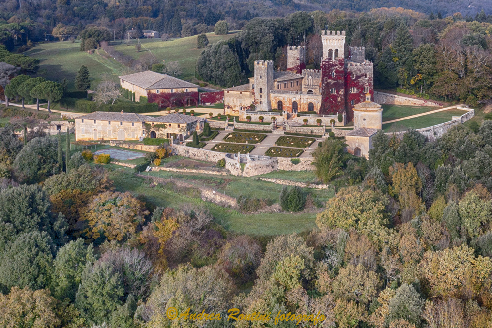 Il Castello si erge nella Montagnola senese, un bellissimo territorio collinare fra i comuni di Casole d’Elsa, Monteriggioni, Siena e Sovicille.