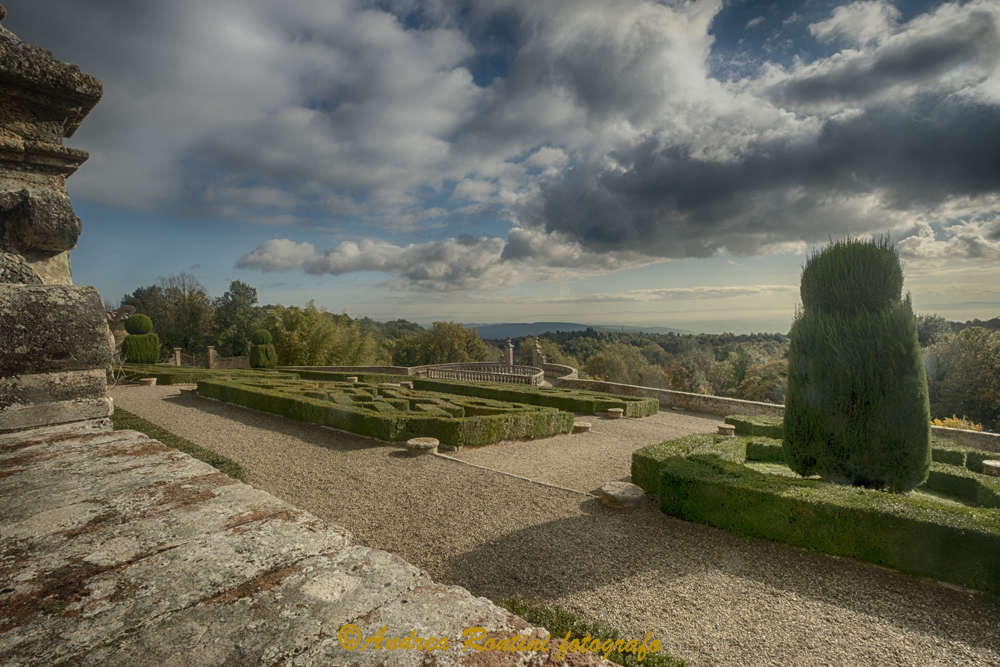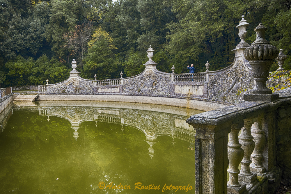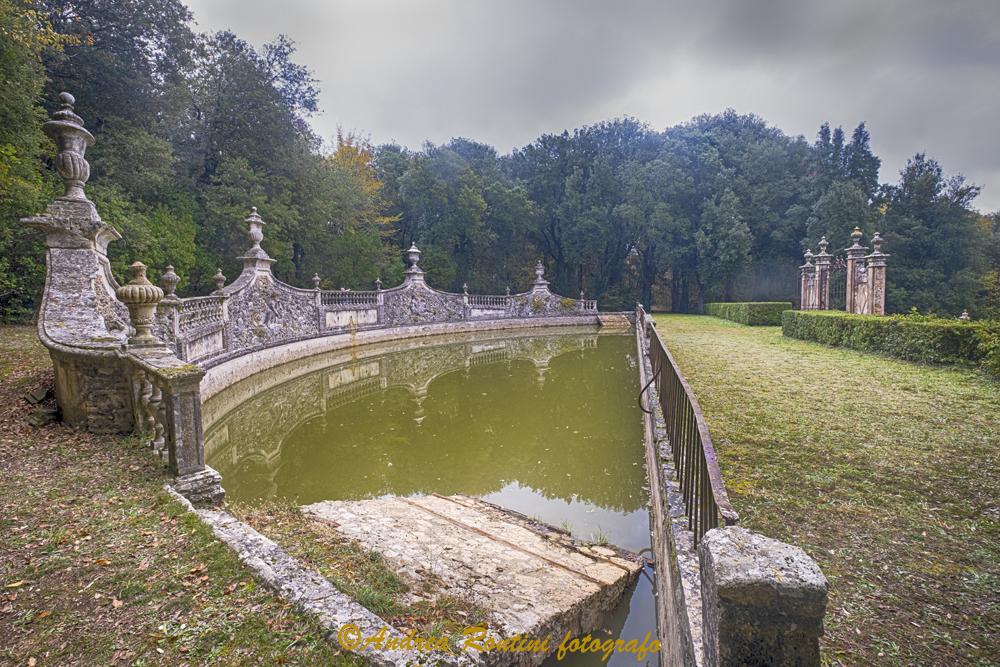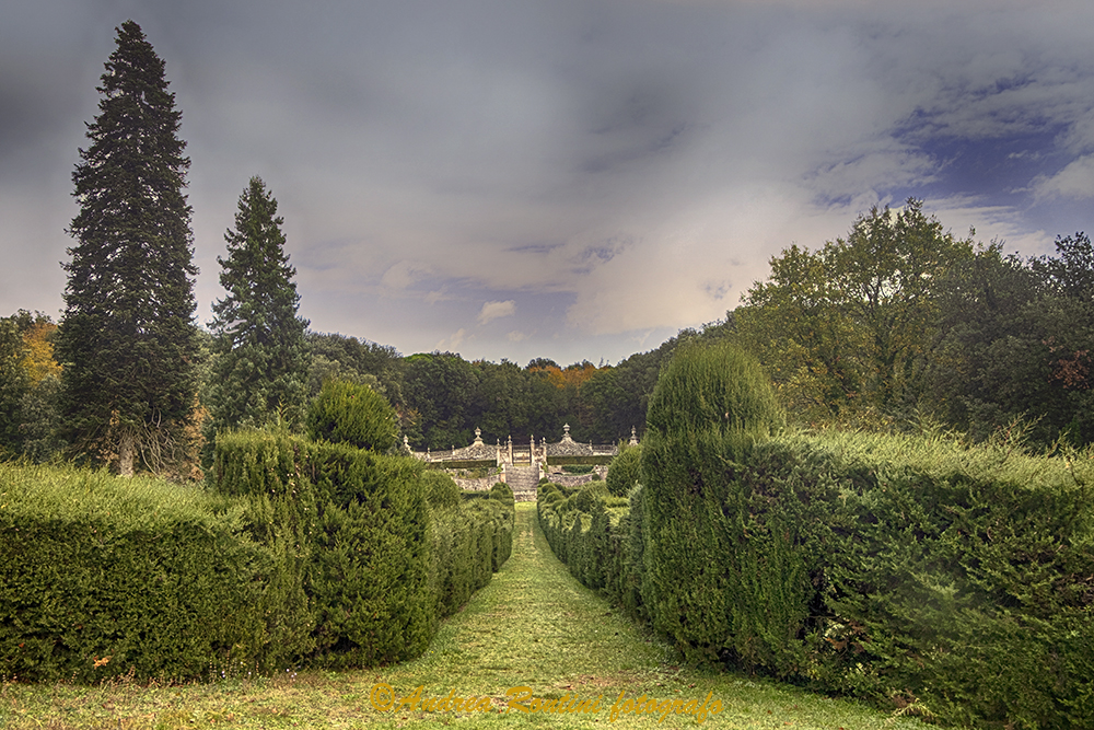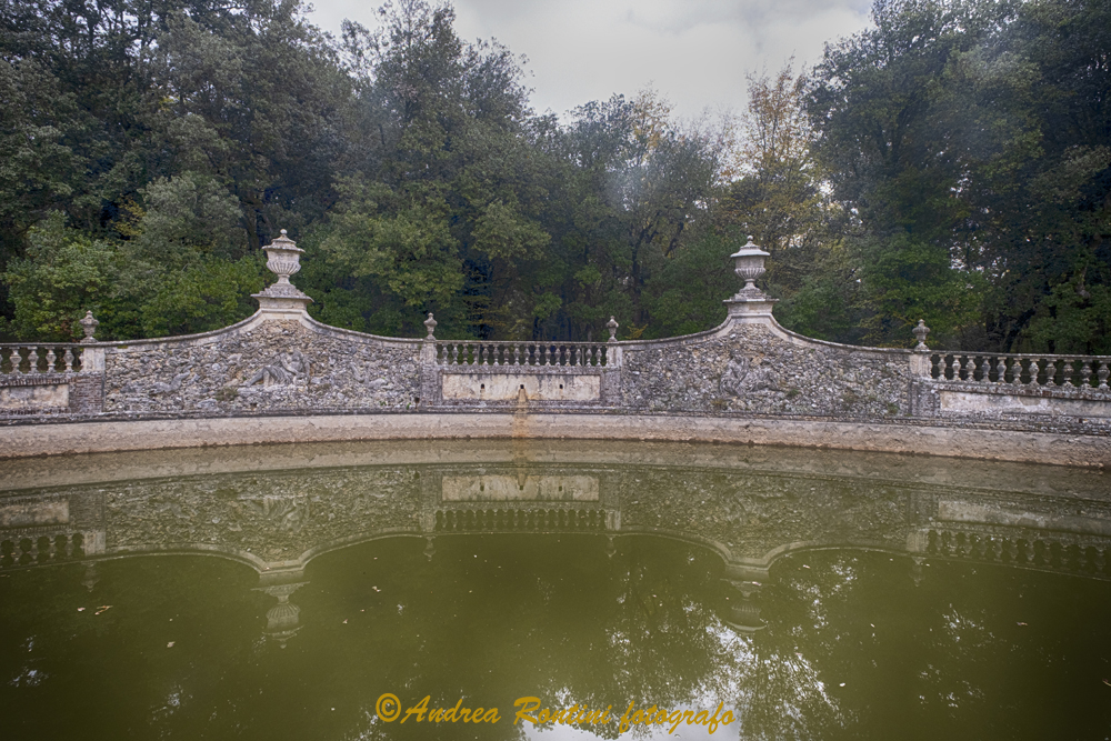 Dalla vasca, il giardino all’italiana con il complesso del castello.