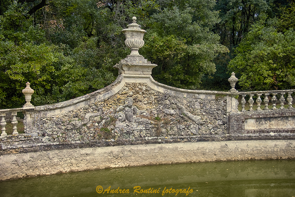Nel muro della Peschiera ci sono statue a rilievo di divinità marine e draghi