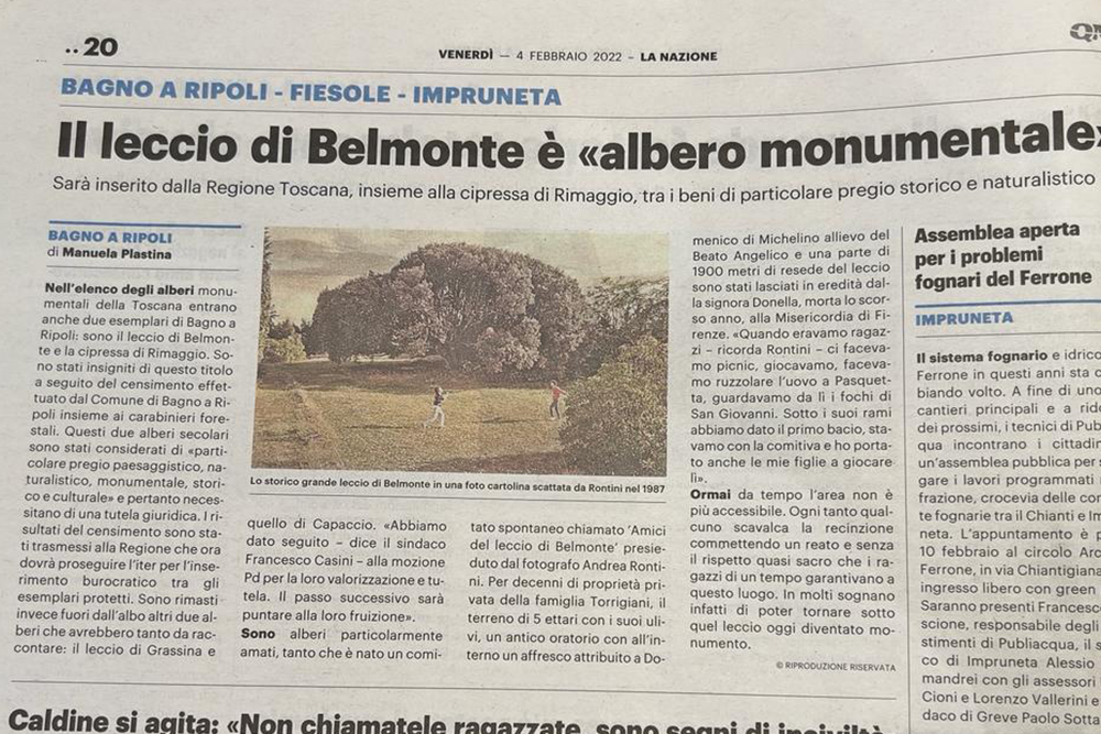 Alla proprietà attuale del resede dove insiste il Leccio che è la Misericordia di Firenze dobbiamo riconoscere l’opera meritoria di