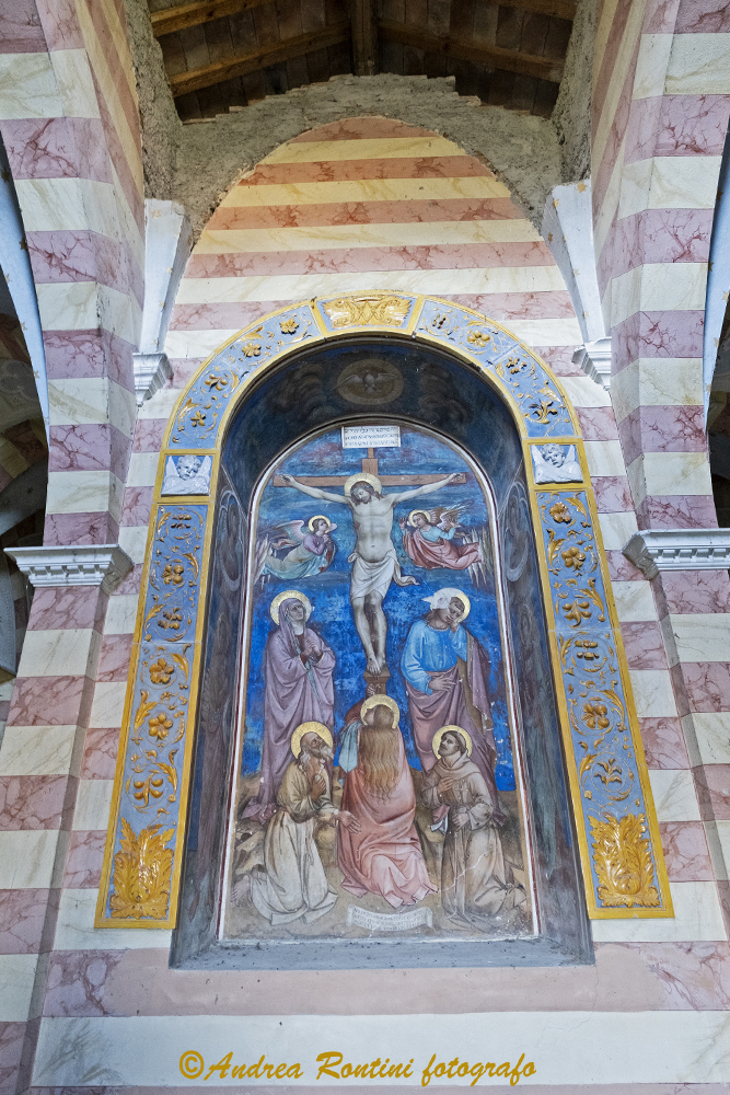 Dentro la Cappellina potremmo ammirare questa Crocifissione attribuita a Domenico di Michelino, allievo del Beato Angelico, da Anna Padoa Rizzo nel 1985.