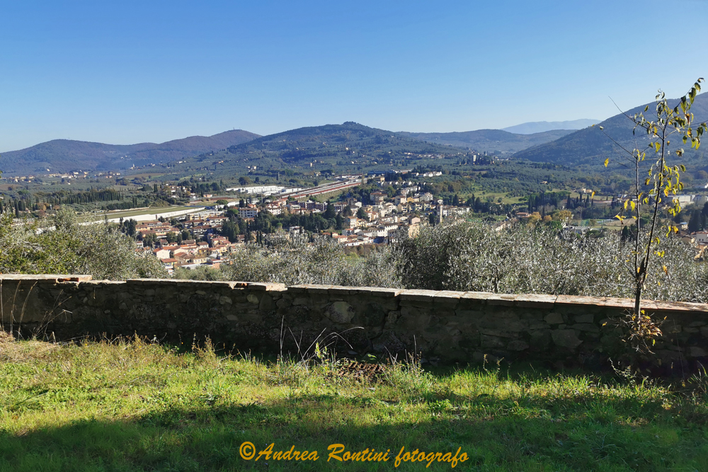 Dal muretto del resede possiamo ammirare la città di Firenze e a destra il Monte Morello