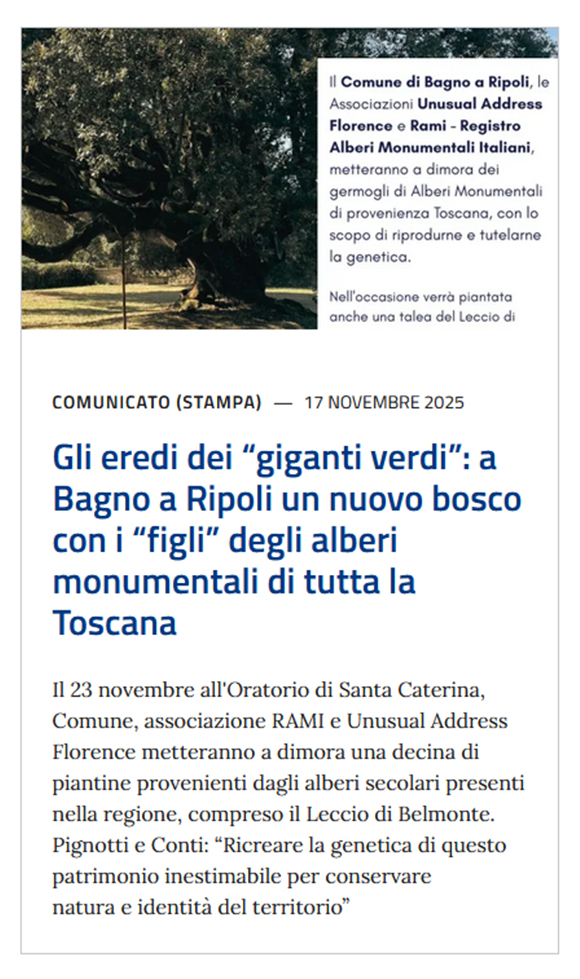 Nel titolo di questo blog ho scritto che il Leccio ha voglia di procreare. In realtà l’Amministrazione Comunale fa un’importante iniziativa domenica 23 novembre 2025  in occasione della Festa dell’Albero.