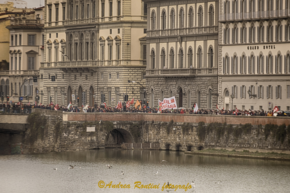Il lungo corteo si snoda fra i lungarni Vespucci e Corsini