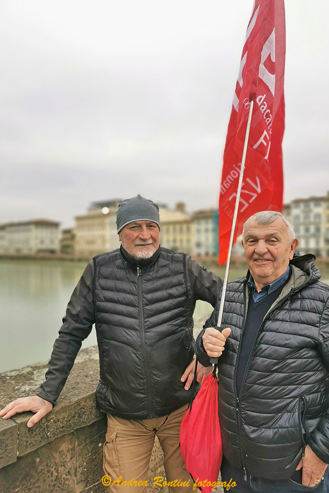 Gli amici Alessio Migliorini e Giorgio Monini sul ponte Santa Trinita