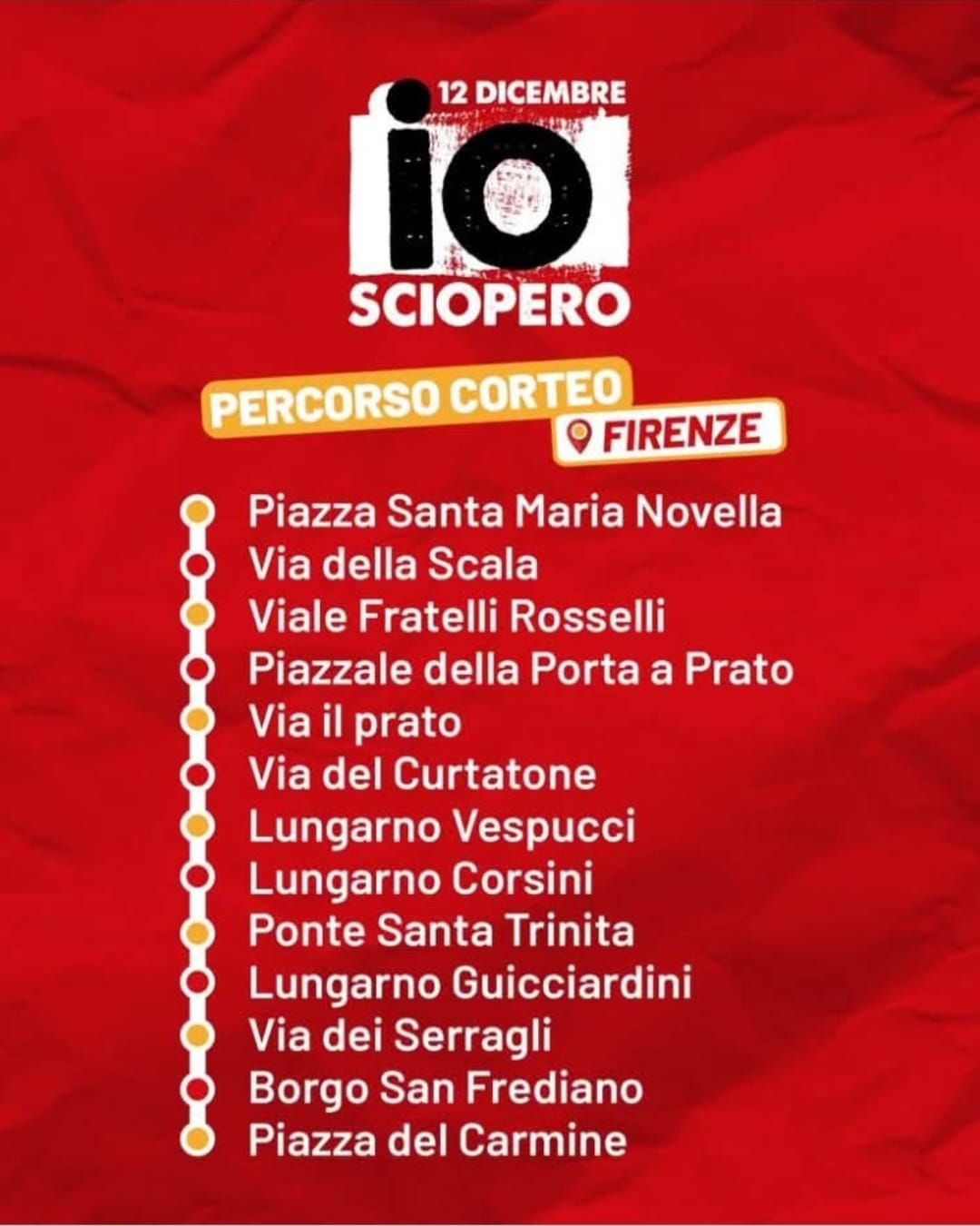 Il percorso della manifestazione per arrivare a piazza del Carmine dove Maurizio Landini, Segretario Generale CGIL, terrà il suo intervento di chiusura